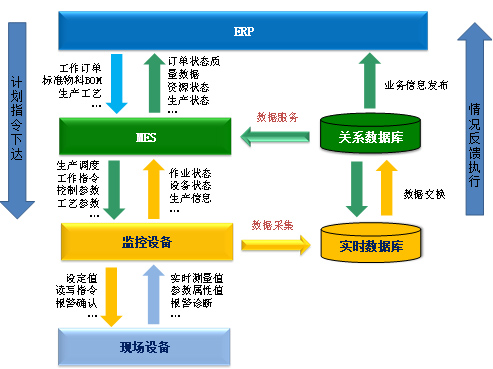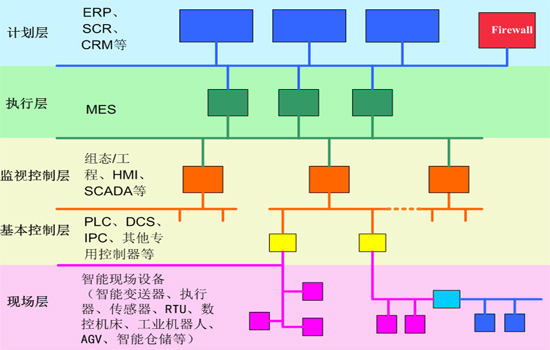 2)执行层:实现面向工厂/车间的生产管理,如维护记录、详细排产、可靠性保障等。制造执行系统(MES)在该层运行。